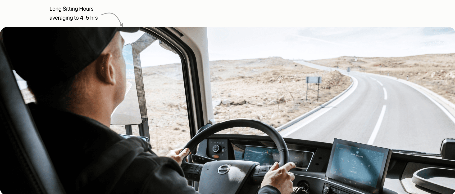 Our target customers were mainly from logistics and supply chain industries. Initial research and surveys helped me identify and categorise them into 5 types of users. These individuals worked under strict deadlines and had commitments. Working in these areas they spent long hours behind the wheels and often had little to no time to stretch or change their postures.
